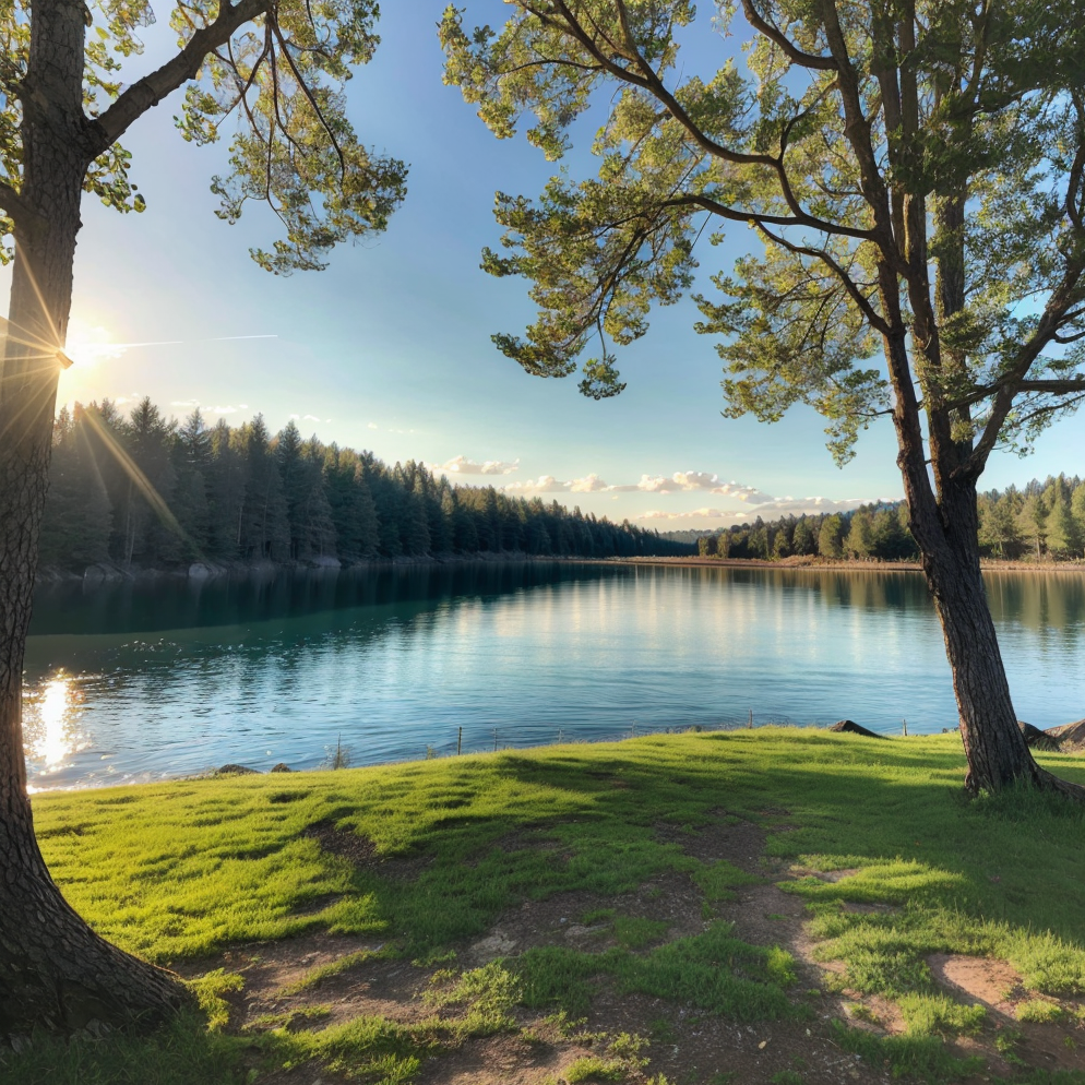 아침에 눈부신 태양 아래서 부드러운 파도가 반짝이는 해변에서 출발했다.